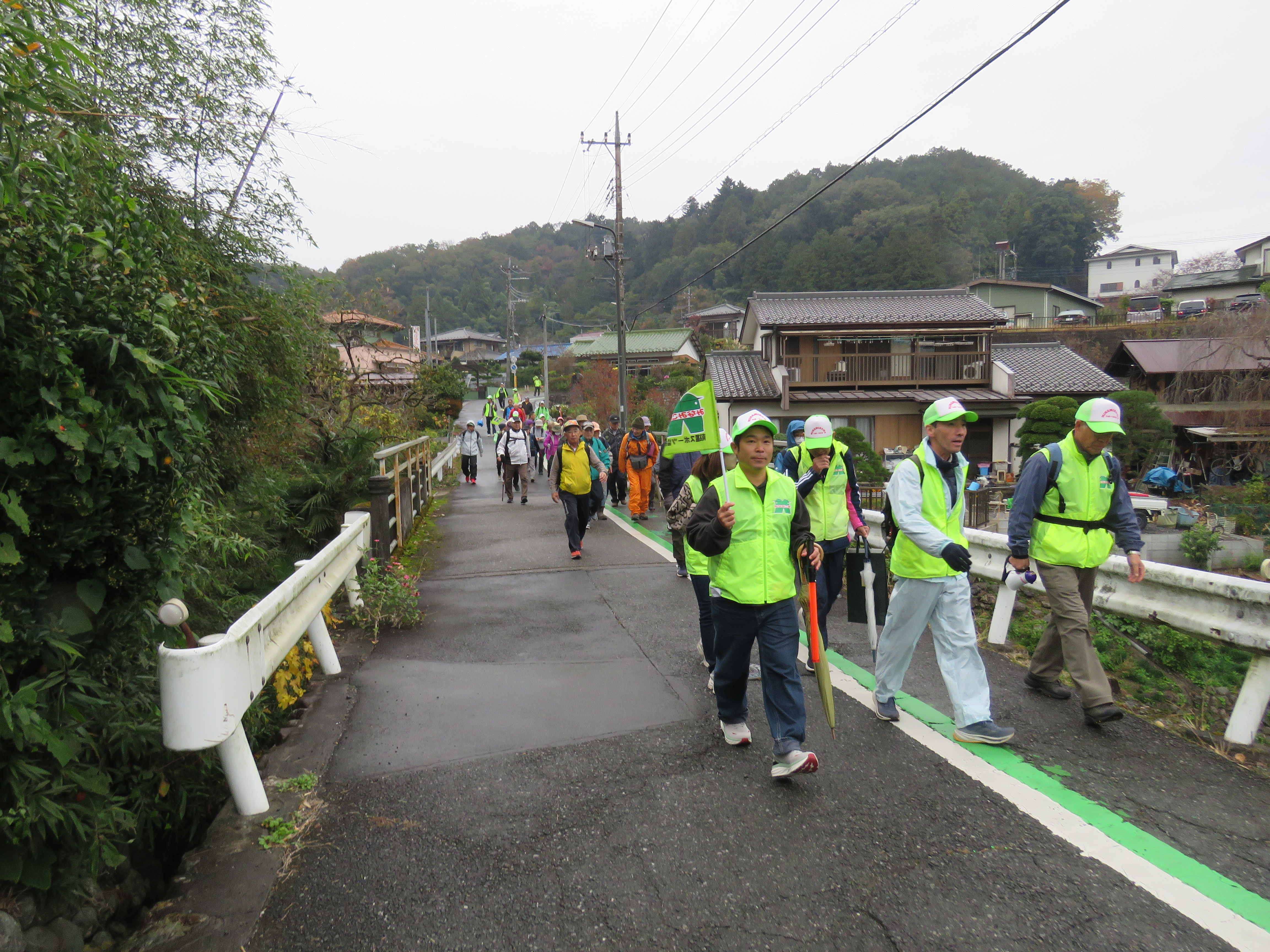 第20回南高麗ワンデーウオーク 11月9日(日)に第20回南高麗ワンデーウオークが開催され、約50名が青梅・成木方面の約8キロメートルのコースを完歩しました。また、ゴール地点では、南高麗地区文化祭が開催されており、駐車場では数々の模擬店が出品し、参加者も思い思いに楽しみました。また、今回もまちづくり推進委員会による歩行中の写真配布サービスが行われました。